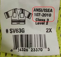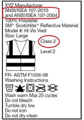 The current American National Standard for High-Visibility Safety Apparel and Headwear (ANSI 107-2010), can be purchased from International Safety Equipment Association at telephone number (703)525-1695.