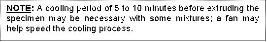 NOTE: A cooling period of 5 to 10 minutes before extruding the specimen may be necessary with some mixtures; a fan may help speed the cooling process.