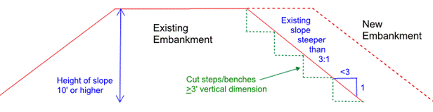 Figure 6.40-1 Required benching when placing embankment against existing slope generally steeper than 3:1