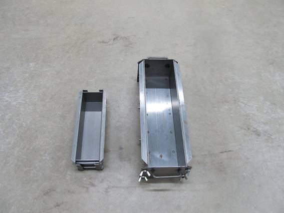 1. 6 in. x 6 in. x 20 in. minimum length or 4 in. x 4 in. x 14 in. minimum length beam mold. The molds provided will comply with the requirements of AASHTO T-23 for dimensions, construction, materials, smoothness and straightness.