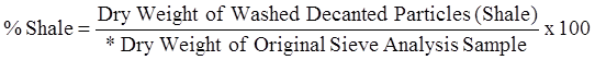 1.   Calculate the percentage of shale (and other low specific gravity materials) by the following formula: