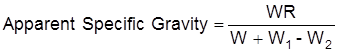 Calculate the vacuum apparent specific gravity (lines 1 through 11 of the data sheet, Appendix A) of the aggregate sample as follows: