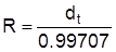 0.99707 = density of water at 77°F (25°C) grams/cc