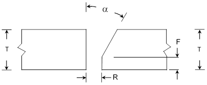 Thickness T ≥ 3/8” Root Opening R 0 to 3/16” Root Face F 0 to 1/8” Groove Angle a 30° to 45°