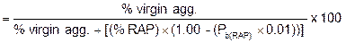 % of virgin asphalt binder in the hot mix asphalt mixture. Does not include the asphalt binder from the RAP |