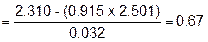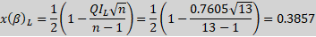 Next, the percent of non-conforming for the upper and lower specification limit must be calculated. The percent non-conforming is calculated by transforming quality index into x(β), a value “x” within the beta distribution. The lower quality index is transformed to x(β)L by: