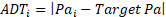 Calculate the absolute deviation from target (ADTi) for sample, i, using the following equation: