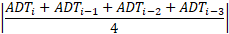Calculate the moving average ADT for i ≥ 4 using the following equation: