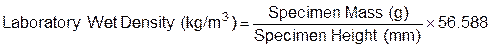 Gyratory Laboratory Wet Density (lb/ft3) = metric wet density (kg/m3) × 0.062436