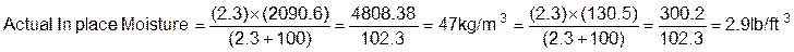 Example: %Moisture = (9.1 lb/ft3 - 7.5 lb/ft3) x 100 = 1.3