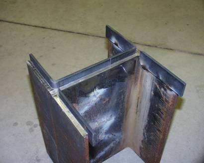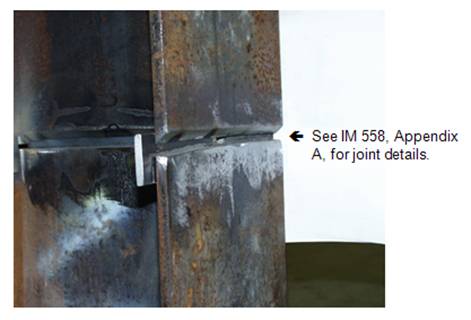 Figure 1. Top of pile to be extended is cut square. Backing plates fit snug against the pile. After welding, backing plates shall be trimmed flush with the flanges of the pile.